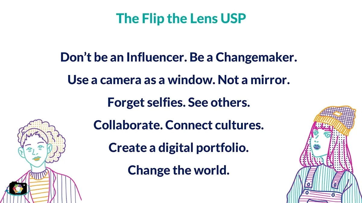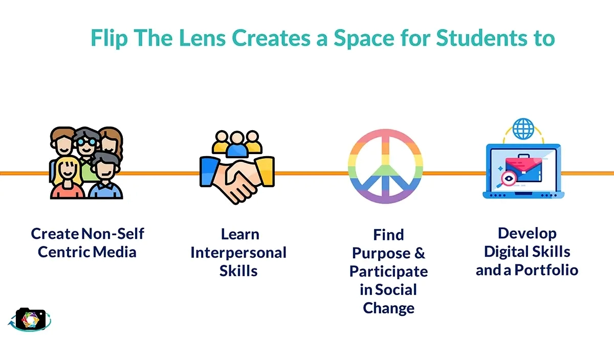 It’s well-documented that social media creates mental health issues, and too much screen time can be isolating and negatively impact the development of social and emotional skills. At Flip the Lens, we believe digital devices can be a portal to connect with ourselves and each other!