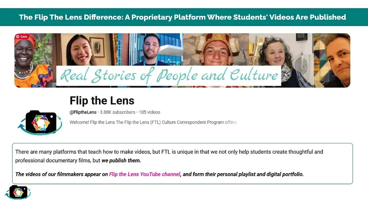 Once you make the requested edits, re-submit your video. If all the recommendations have been addressed, your video will be published on the Flip the Lens Youtube channel within five business days. Each video you create will appear on your playlist and serve as an impressive digital portfolio! Bravo!